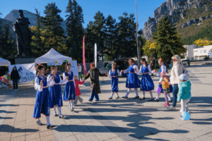 Създаде се чудесна атмосфера! Учениците от СУ „Отец Паисий“ с ръководител Анелия Цветанова допринесоха за това с пъстрите си носии, хората и възможността всички присъстващи да се включат в тях.
